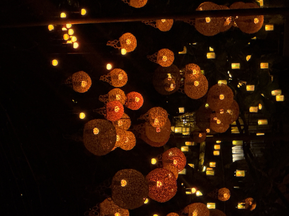 - "An array of spherical, woven lanterns hangs in the dark" by FM-PAcZC3, licensed under CC BY 4.0