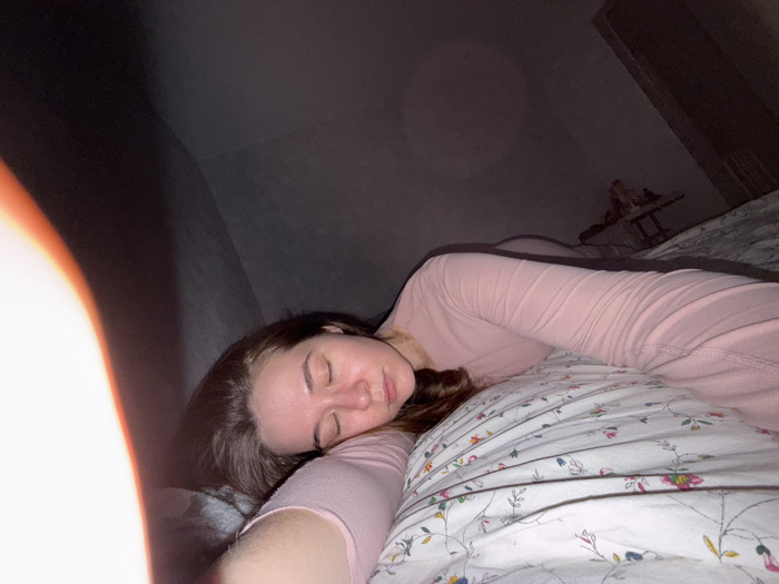 - "A young female subject is depicted lying asleep on her right side in what appears to be a bedroom" by FM-NRG9D2, licensed under CC BY 4.0