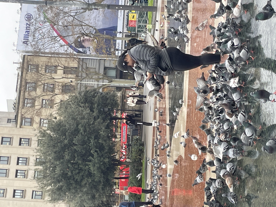 - "The image depicts a crowded urban plaza, identified as Plaça de Catalunya in Barcelona, Spain, under an overcast sky" by FM-T5EOT2, licensed under CC BY 4.0