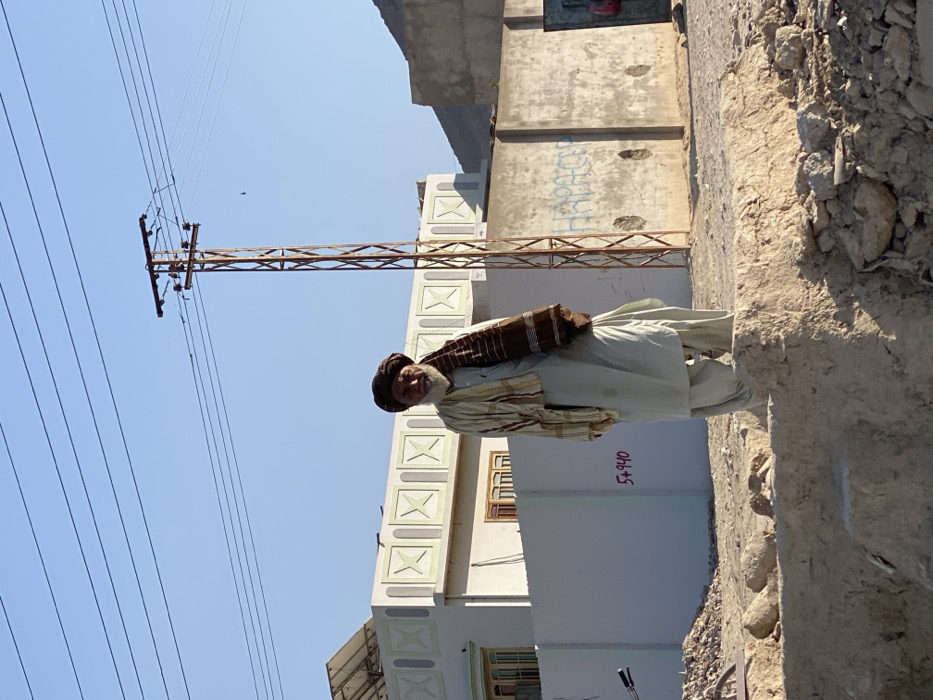 An elderly man stands in a dusty, sunlit street in کوکران, Afghanistan