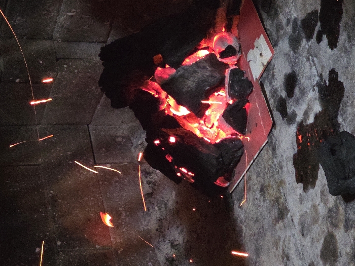 - "The image displays a contained charcoal fire within a dark, brick or concrete block structure, consistent with a grill or fireplace, located in Villa San Andrés, Argentina" by FM-XZJsC3, licensed under CC BY 4.0