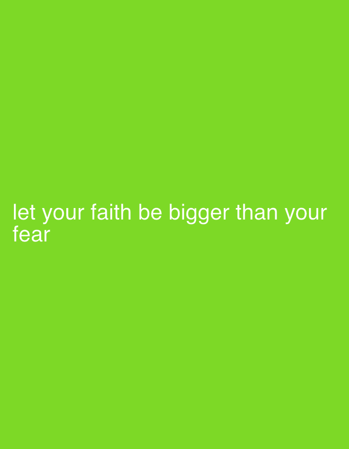 The image features a solid green background. In the lower left portion, white text reads "let your faith be bigger than your fear." The text is simply displayed without any specific font style or unique formatting. The overall impression is a motivational message presented plainly against a bright, single-color backdrop.