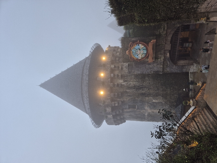 - "The image displays a large, stone castle-like tower and an adjacent entrance structure engulfed in dense fog, indicative of an elevated and misty environment" by FM-vOprn2, licensed under CC BY 4.0