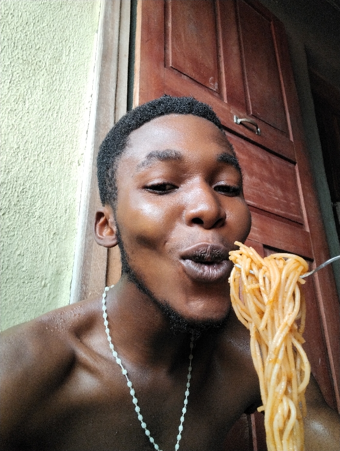 - "This image, taken in Ihiagwa, Nigeria, captures a close-up, front-facing view of a young adult male in the process of eating spaghetti" by FM-q7ckX2, licensed under CC BY 4.0