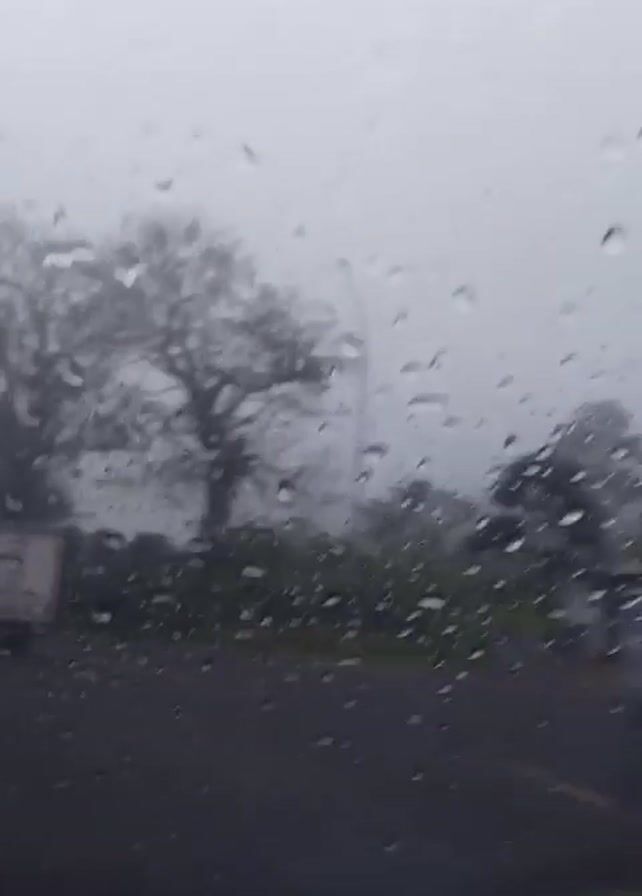 The video, shot from inside a car, shows a road on a rainy day