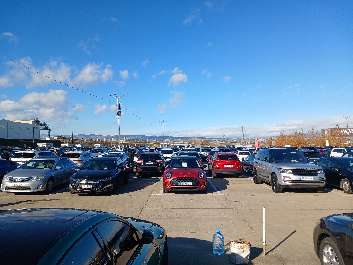 - "This image presents an expansive outdoor vehicle parking lot located in Rustavi, Georgia, under a clear blue sky with scattered white cumulus clouds, indicating bright daylight" by FM-uCYTf2, licensed under CC BY 4.0