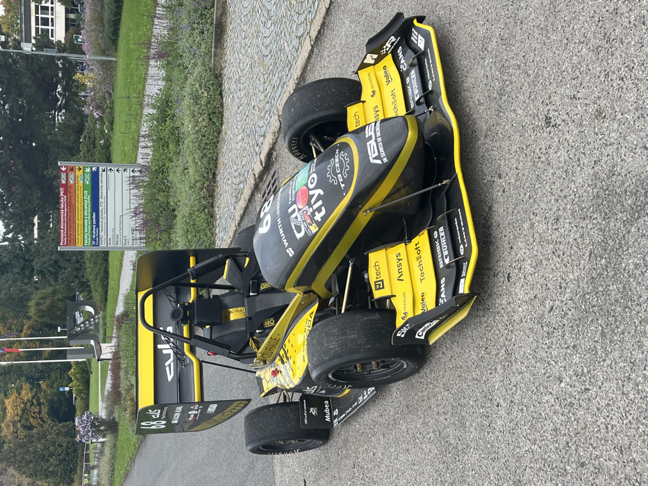 - "A yellow and black single-seater open-wheel race car, bearing the number '68' on its rear wing and nose cone, is parked on an asphalt road" by FM-z3zSe2, licensed under CC BY 4.0