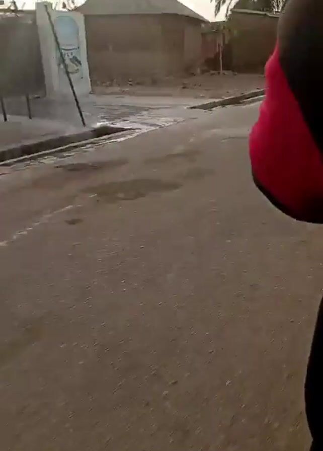 street in a small town with modest houses and palm trees. The camera is moving, likely mounted on a motorcycle or bicycle, filming from behind. At least two other motorcycles pass. People are visible on the side of the road.
