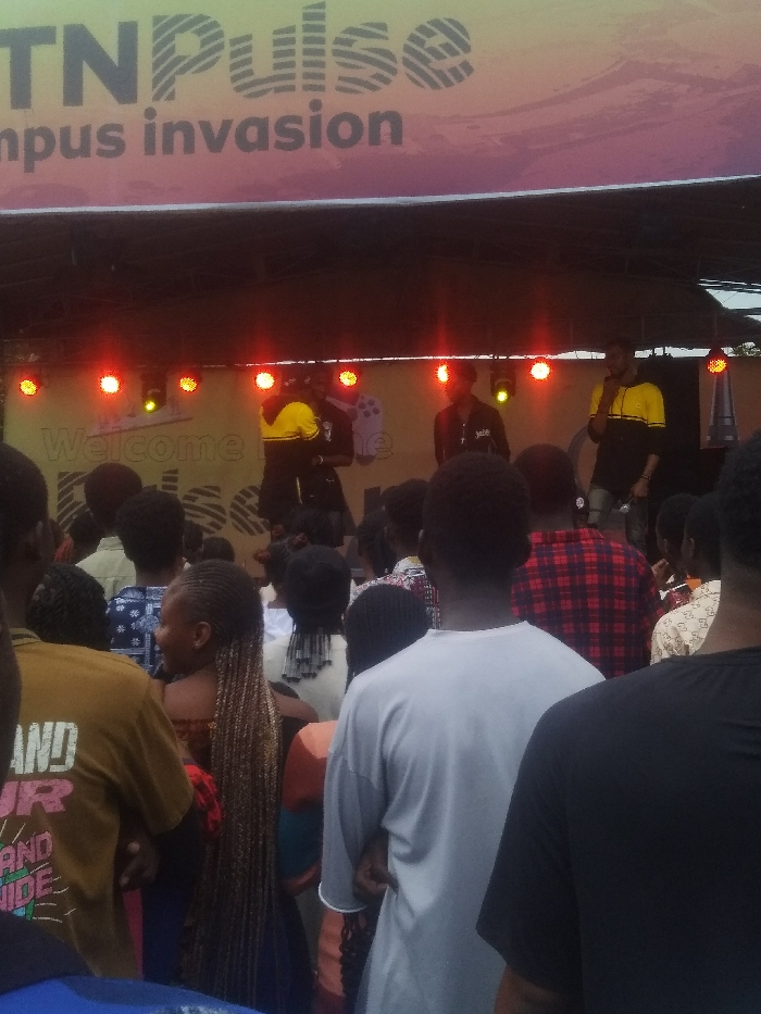 - "The image depicts an outdoor event occurring on a university campus in Ihiagwa, Nigeria, identified by an overhead banner reading "MTNPulse Campus Invasion" by FM-oQxgt2, licensed under CC BY 4.0