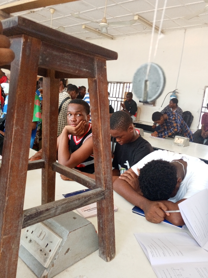 This image captures an indoor scene within a classroom or laboratory setting in Ihiagwa, Nigeria