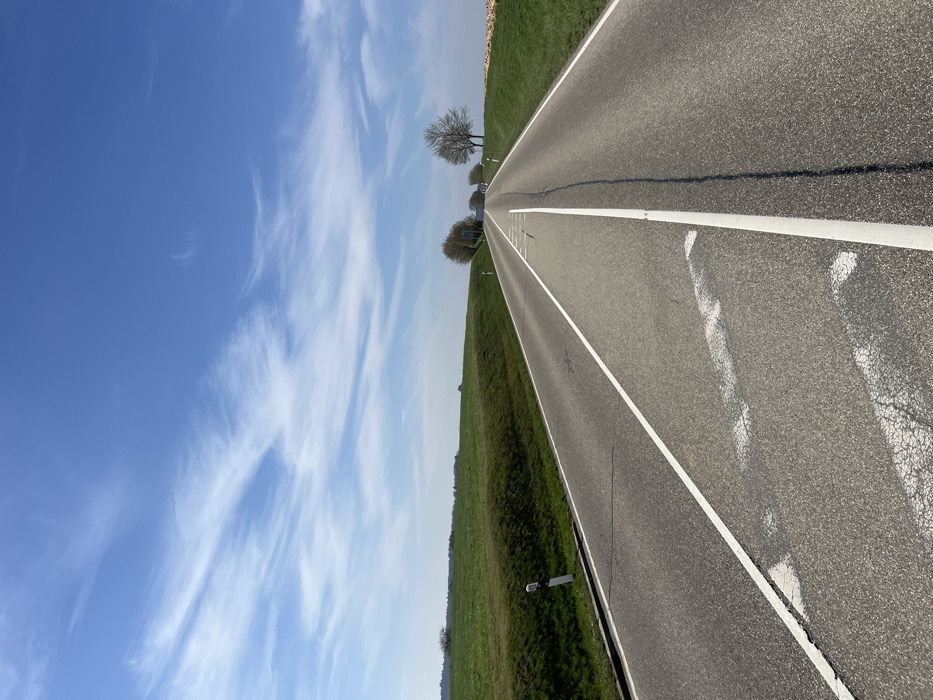 - "The image displays a two-lane asphalt road stretching into the distance under a clear blue sky with scattered wispy white clouds" by FM-N4h4g1, licensed under CC BY 4.0