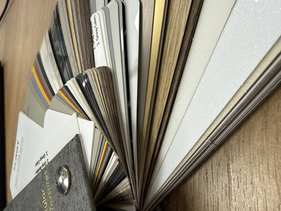 - "An overhead, close-up photograph captures a material sample fan deck spread open on a light brown wooden surface in Yerevan, Armenia" by FM-AtE073, licensed under CC BY 4.0