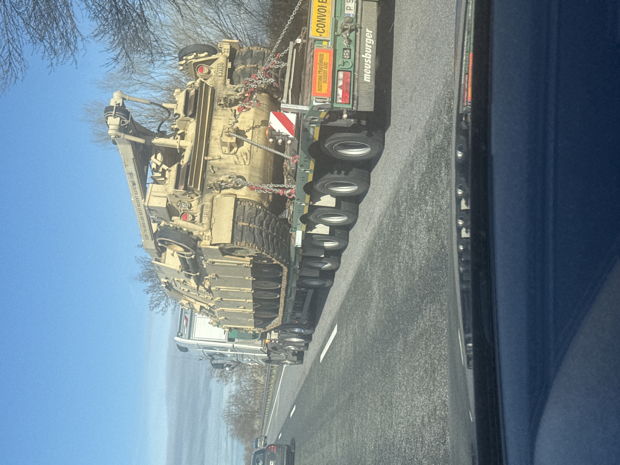 - "On a multi-lane highway near Войводино, Bulgaria, a large, sand-colored military tracked armored recovery vehicle (possibly M88 series), featuring a prominent rear-mounted crane arm, is being transported" by FM-d9ObN2, licensed under CC BY 4.0