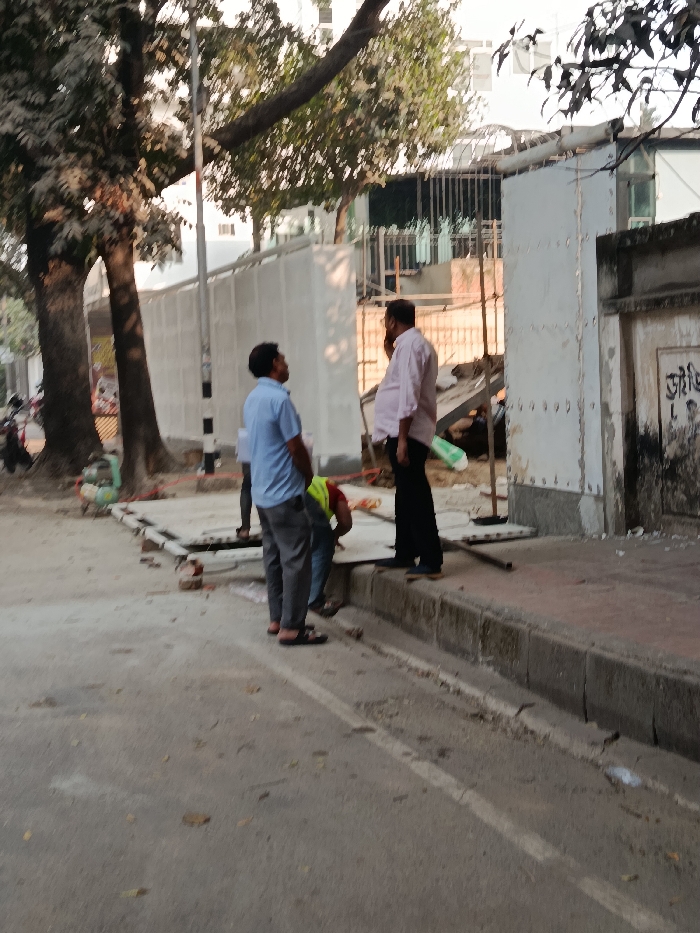 - "An outdoor scene in Dhaka, Bangladesh, depicts a paved street and a concrete sidewalk undergoing apparent construction or repair work" by FM-1YwHv2, licensed under CC BY 4.0