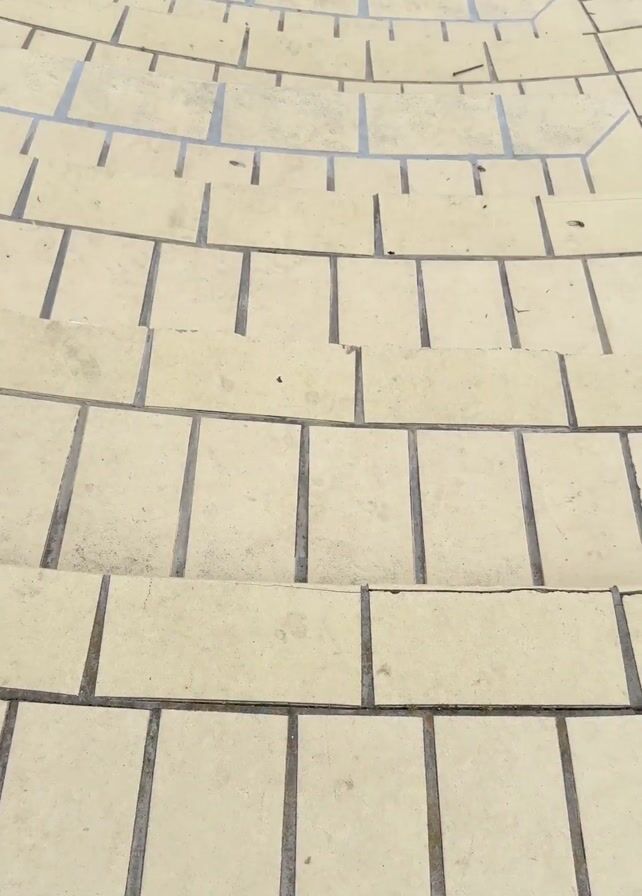 - "The camera ascends a few low steps of a curved brick walkway, transitioning from white/yellow brick to brown/red brick" by FM-bDDUH2, licensed under CC BY 4.0