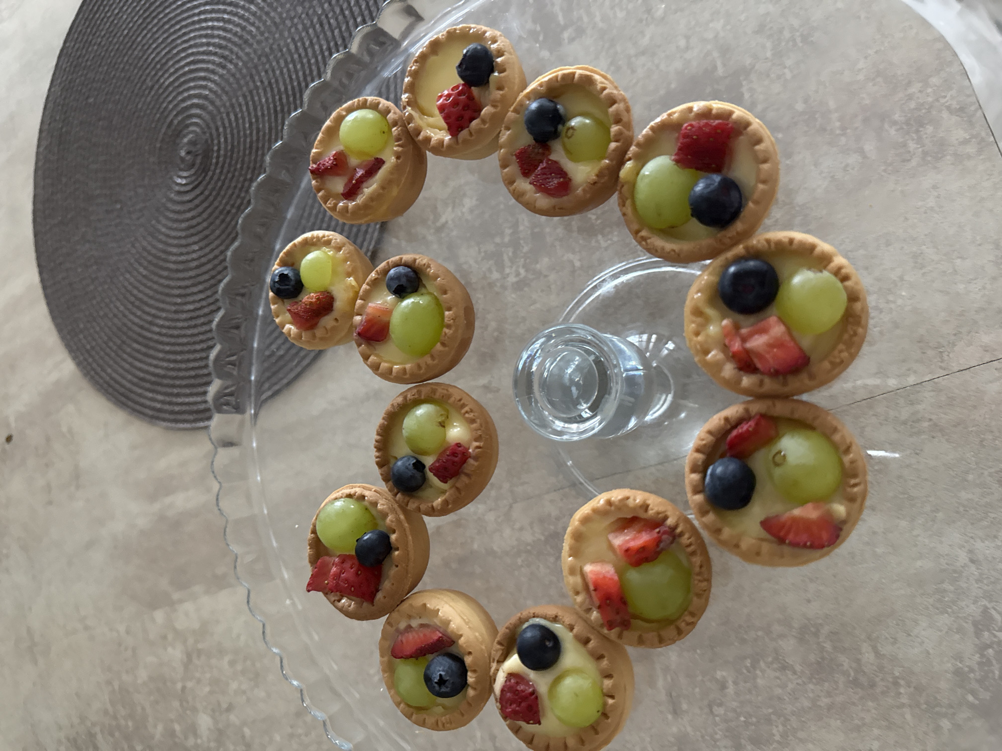 - "A collection of fifteen miniature fruit tarts is arranged in a heart configuration on a clear glass cake stand" by FM-6BofJ2, licensed under CC BY 4.0