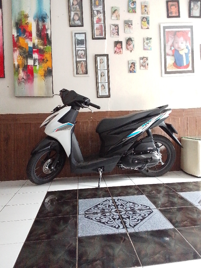 - "A scooter, primarily white with black accents, is parked on a tiled floor" by FM-T6m162, licensed under CC BY 4.0