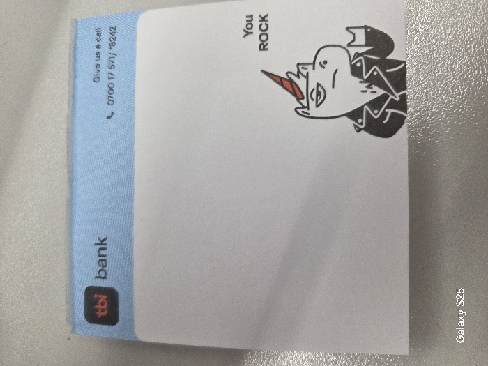 - "A square-shaped TBI Bank sticky note pad is depicted resting on a light-colored, textured surface within the city of Novo Delchevo, Bulgaria" by FM-LBOBJ2, licensed under CC BY 4.0
