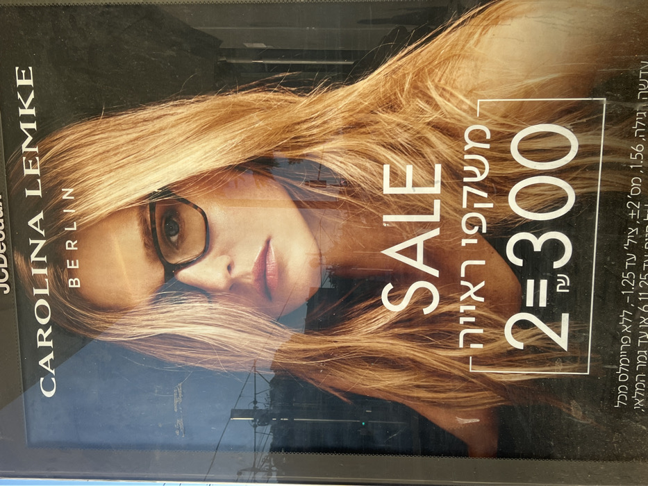 - "An advertisement for "CAROLINA LEMKE BERLIN" eyeglasses is displayed in a vertical format on a public street in Tel Aviv, Israel" by FM-C5wFF2, licensed under CC BY 4.0
