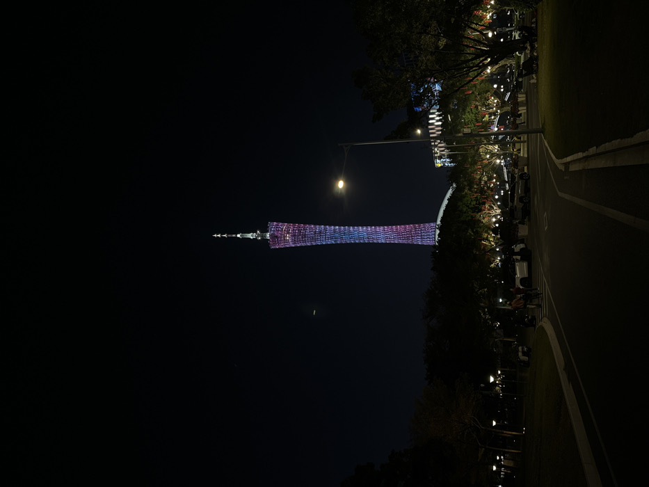 - "The scene depicts a night view of the illuminated Canton Tower from an urban park and street environment in Yuexiu District, Guangzhou, China" by FM-m7RDy2, licensed under CC BY 4.0