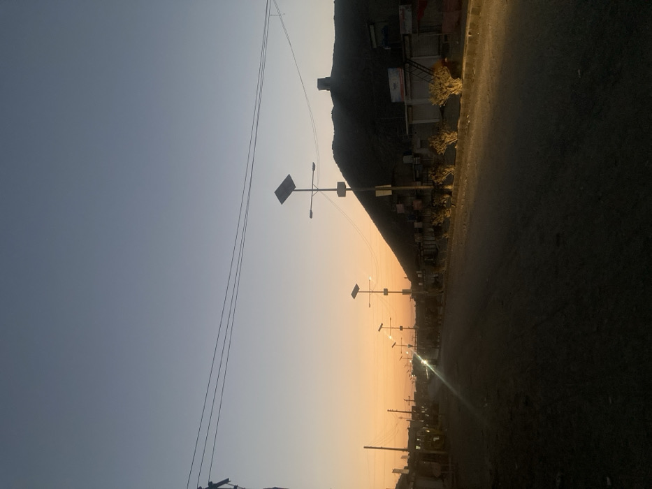 This image depicts a street scene in Qilla Saifullah, Pakistan, at either sunrise or sunset