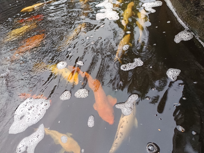 - "This image captures a top-down view of a pond in Ouderkerk aan de Amstel, Netherlands, populated by multiple koi fish" by FM-PvkdH3, licensed under CC BY 4.0