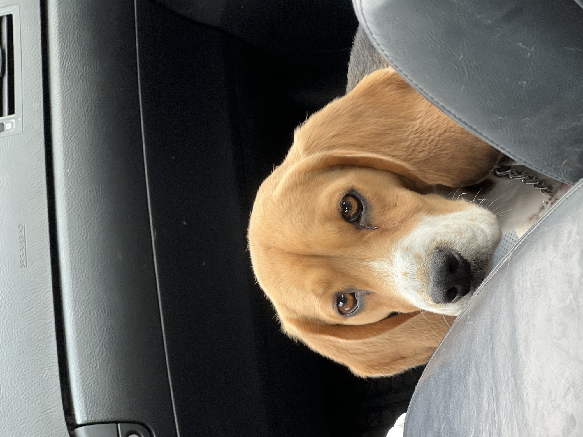 - "A beagle puppy is resting in the passenger seat of a car" by FM-pCDYj1, licensed under CC BY 4.0