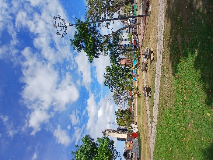 - "The image displays a public park environment under a bright blue sky with scattered white cumulus clouds" by FM-YF5w12, licensed under CC BY 4.0