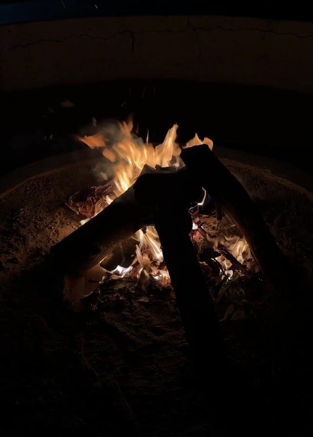 - "A top-down view shows a campfire blazing within a circular fire pit filled with sand" by FM-IT8bv2, licensed under CC BY 4.0