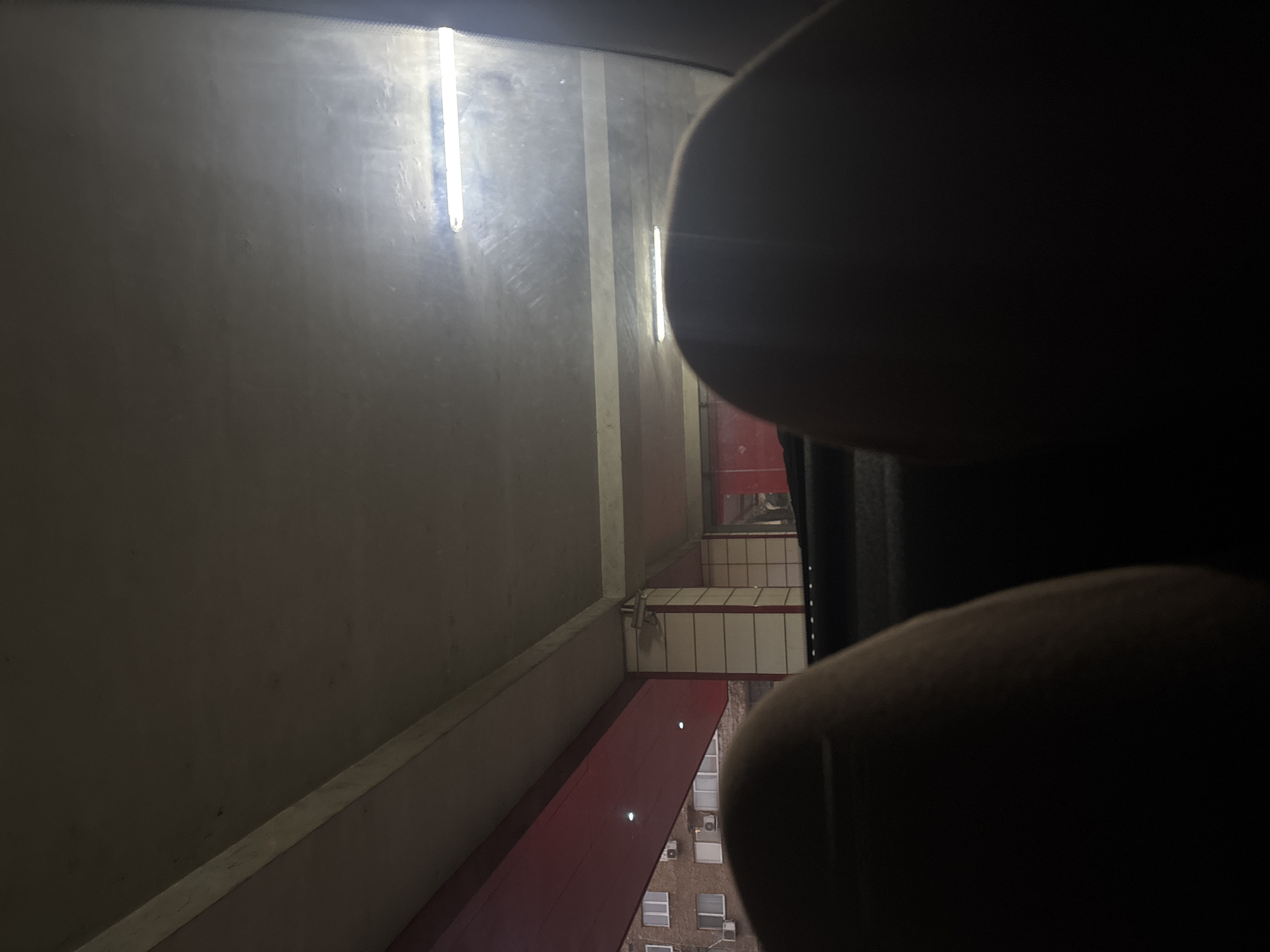 - "The photograph appears to be taken from inside a vehicle, possibly a car, looking upwards out the windshield at a building exterior" by FM-sx3tG3, licensed under CC BY 4.0