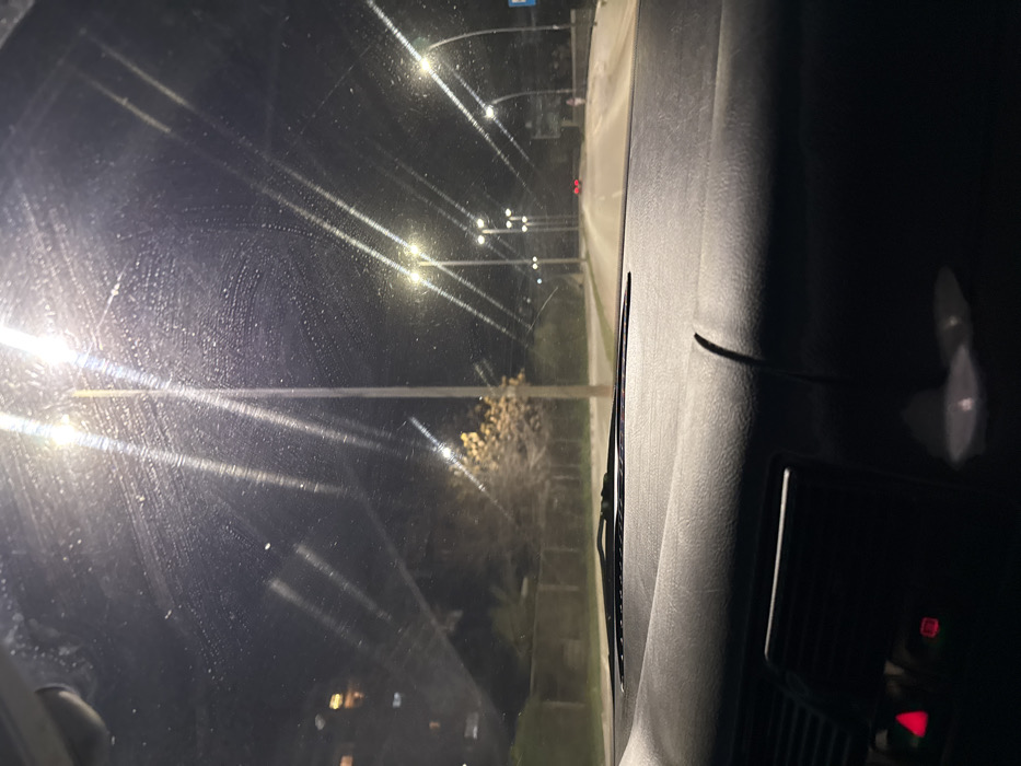 - "The image captures a nighttime street view from inside a vehicle in Boreti, Montenegro, looking forward through a windshield marked with streaks and residue" by FM-JSAz93, licensed under CC BY 4.0