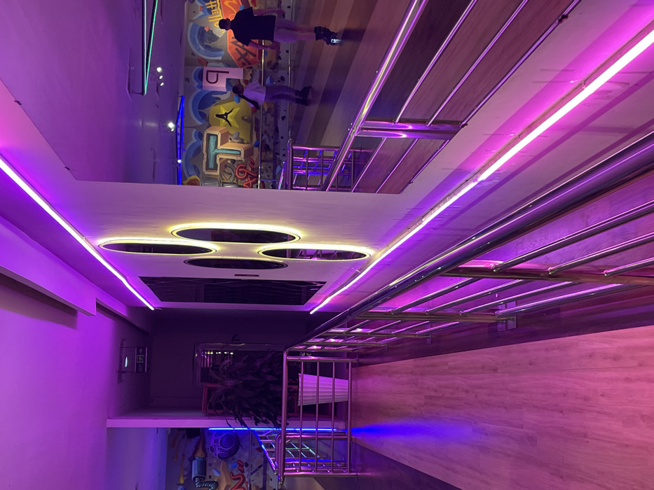 - "This image depicts an indoor roller-skating rink or entertainment venue located in Nha Trang, Vietnam, heavily illuminated by purple and pink neon lighting" by FM-cs6Ol1, licensed under CC BY 4.0