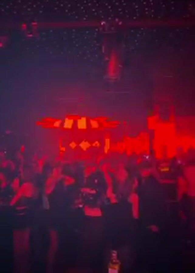 dimly lit, crowded nightclub