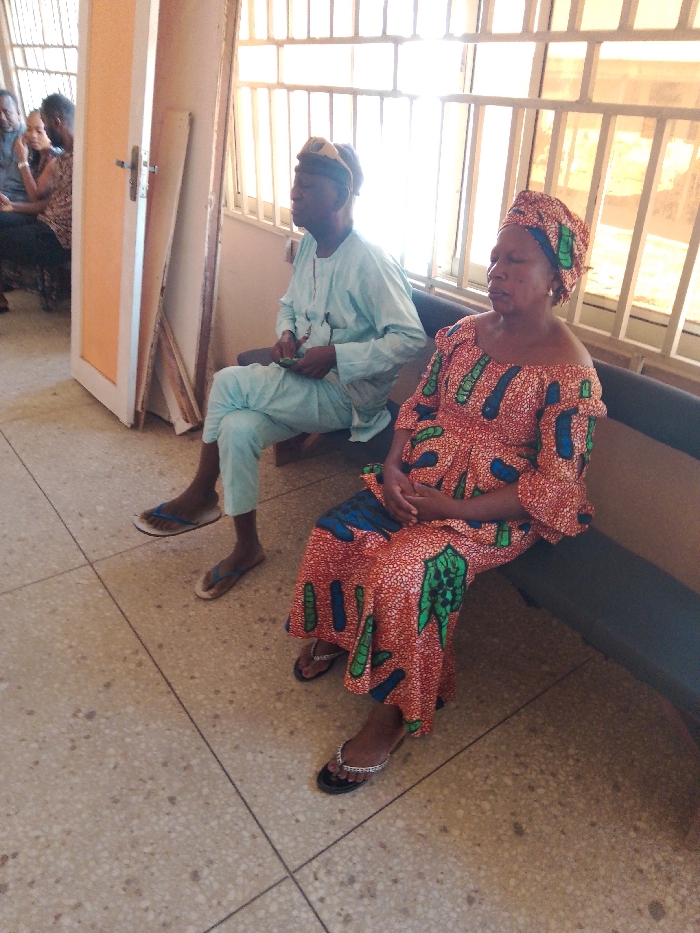 The image displays an indoor scene within a waiting area in Lokoja, Nigeria