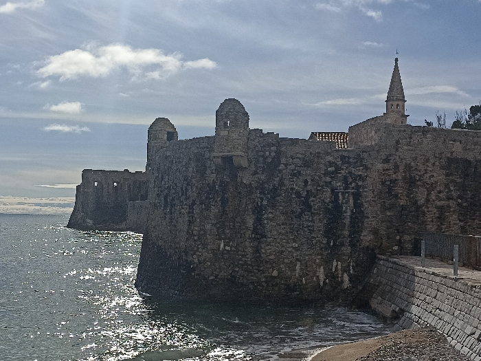 - "The image displays a coastal fortification in Budva, Montenegro, specifically depicting a section of the Old Town walls" by FM-7wfYm1, licensed under CC BY 4.0