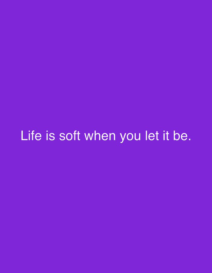 The image displays a solid, uniform purple background. Centered horizontally and vertically on this background is white, sans-serif text that reads: "Life is soft when you let it be." No people, subjects, objects, actions, or interactions are visually depicted within the image content. The environment is an abstract digital display of color and text, without any discernible physical geographical features. This image is described as being present in the city of Zango-ndaji, Nigeria.