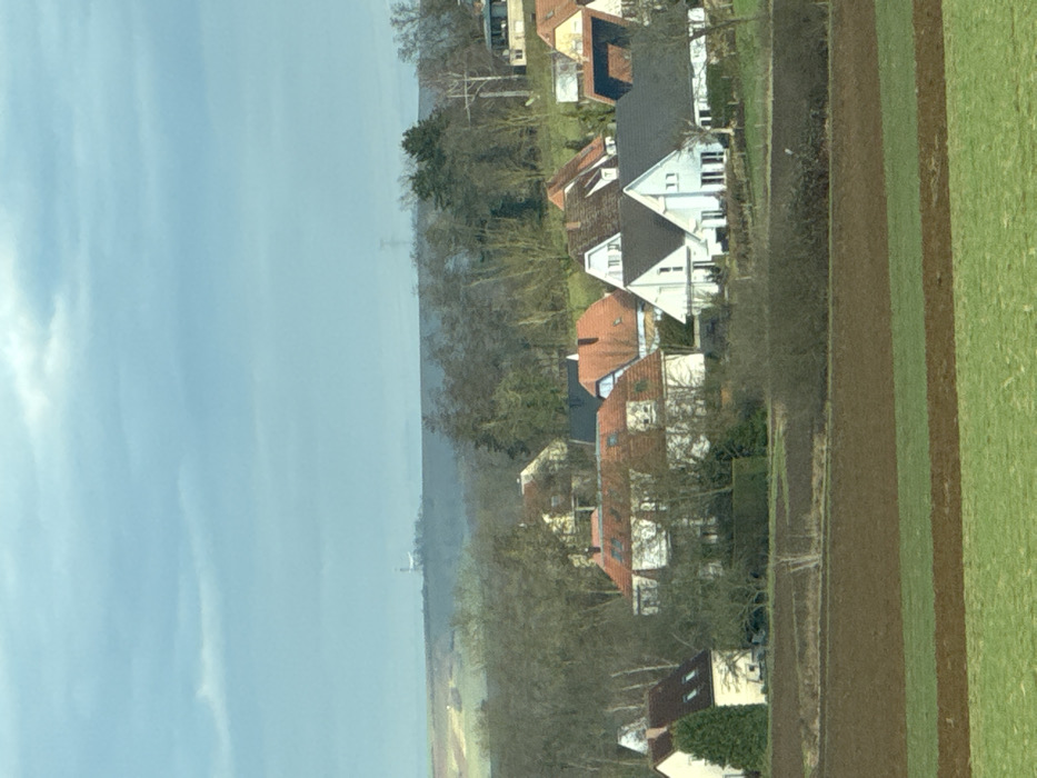 The image depicts a rural landscape in Hurtigheim, France, under an overcast sky