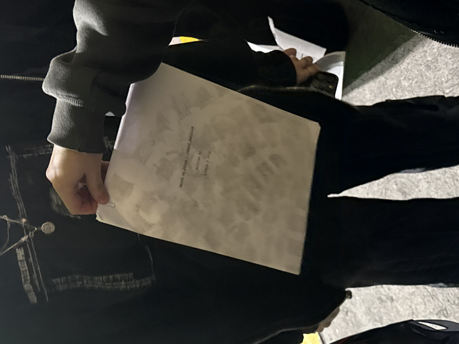 A person dressed in dark clothing holds a script titled "NAIVE DE PREDA - CORRANT ARTELLIUM