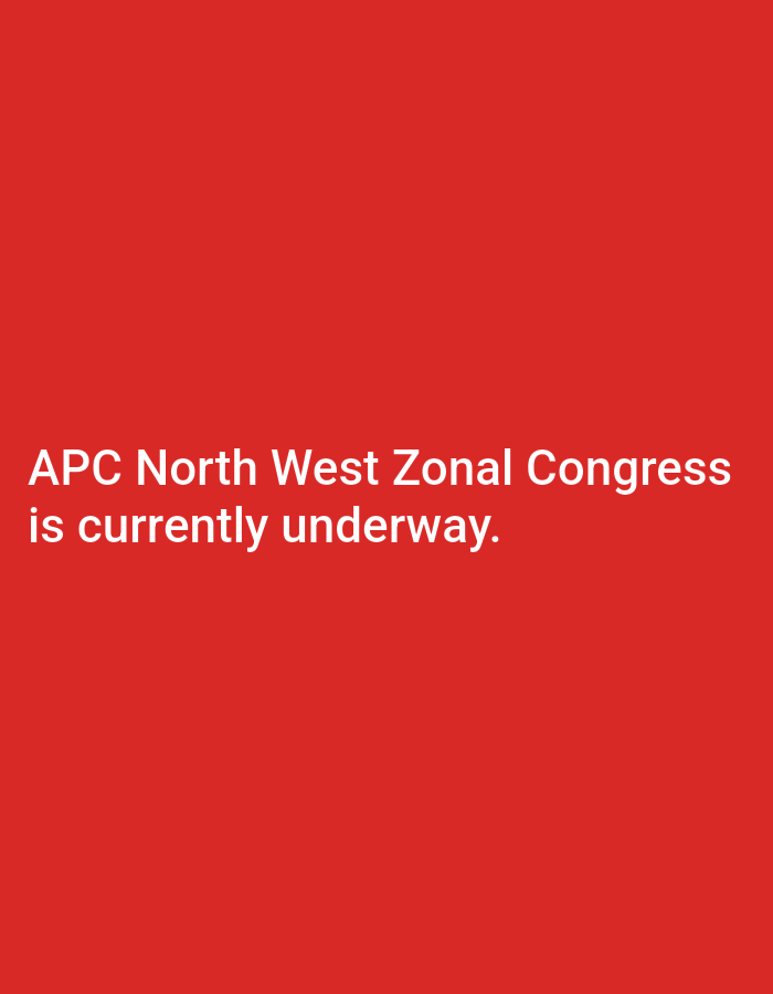 A digital image displays white sans-serif text centered horizontally against a solid, uniform red background. The text, presented in two lines, reads: "APC North West Zonal Congress is currently underway." No individuals, physical objects, or environmental elements are depicted within the frame. The scene does not represent a physical location within the city of Unknown, Unknown; it is exclusively a text-based graphic.