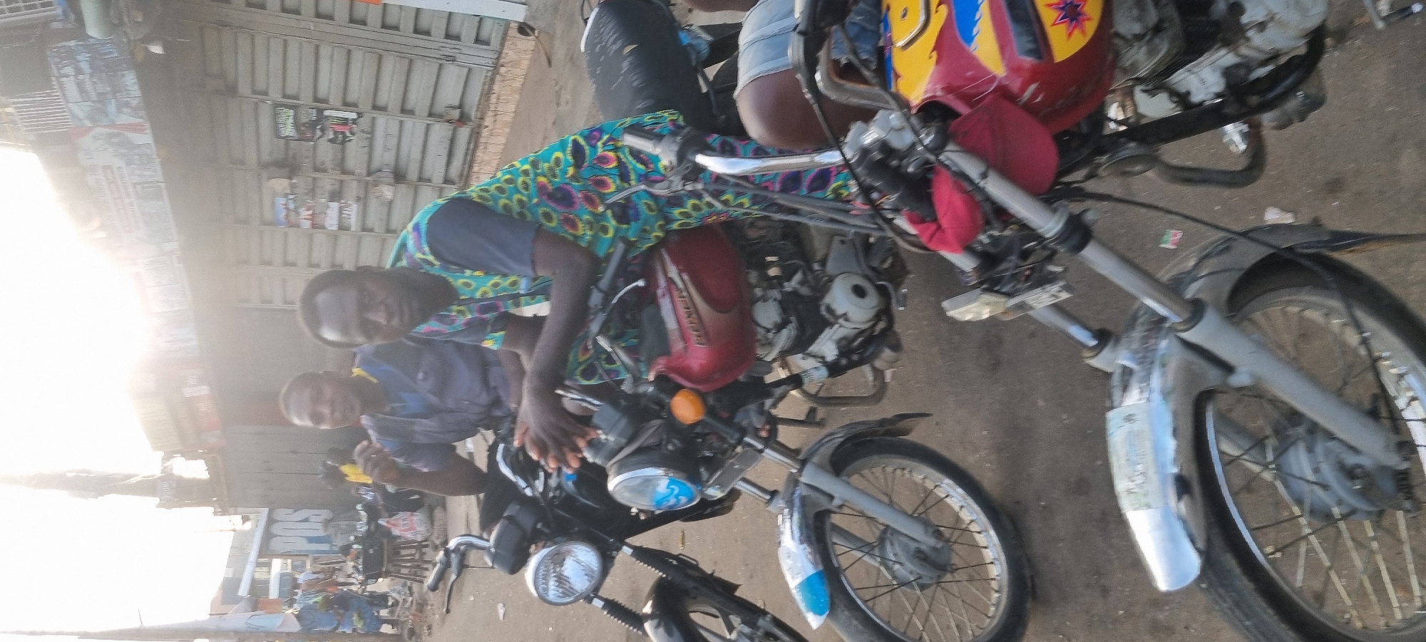 two men with motorcycles in what appears to be Ikeja, Nigeria