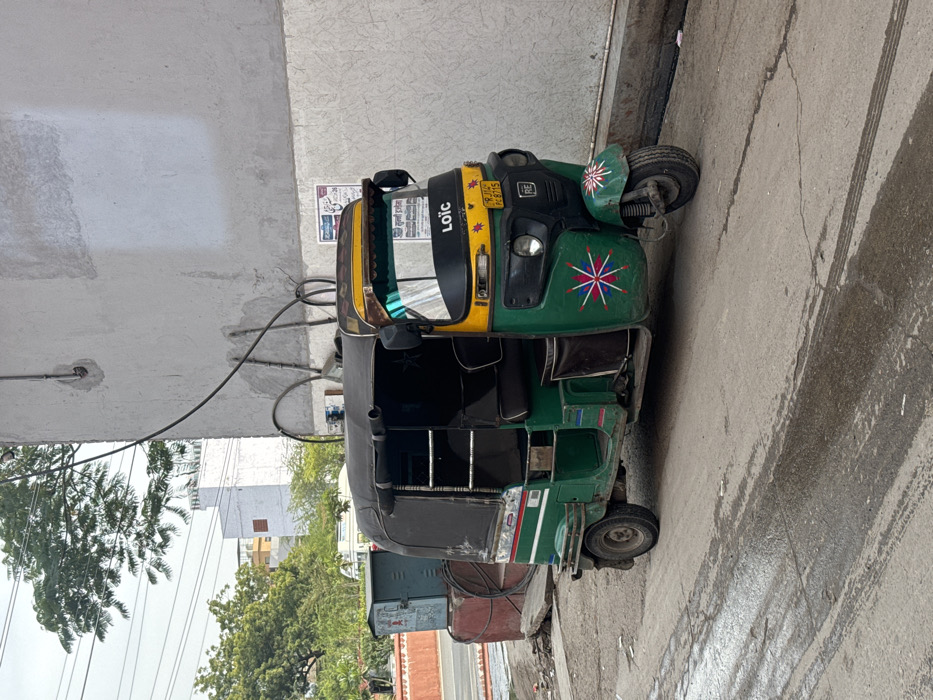 - "The scene displays a stationary, green and yellow auto-rickshaw parked on a concrete and dirt surface in Jaipur, India" by FM-y5OoI2, licensed under CC BY 4.0