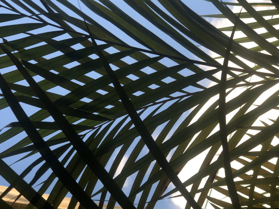 - "close-up of palm tree fronds against a blue sky with white clouds" by FM-jMQta2, licensed under CC BY 4.0