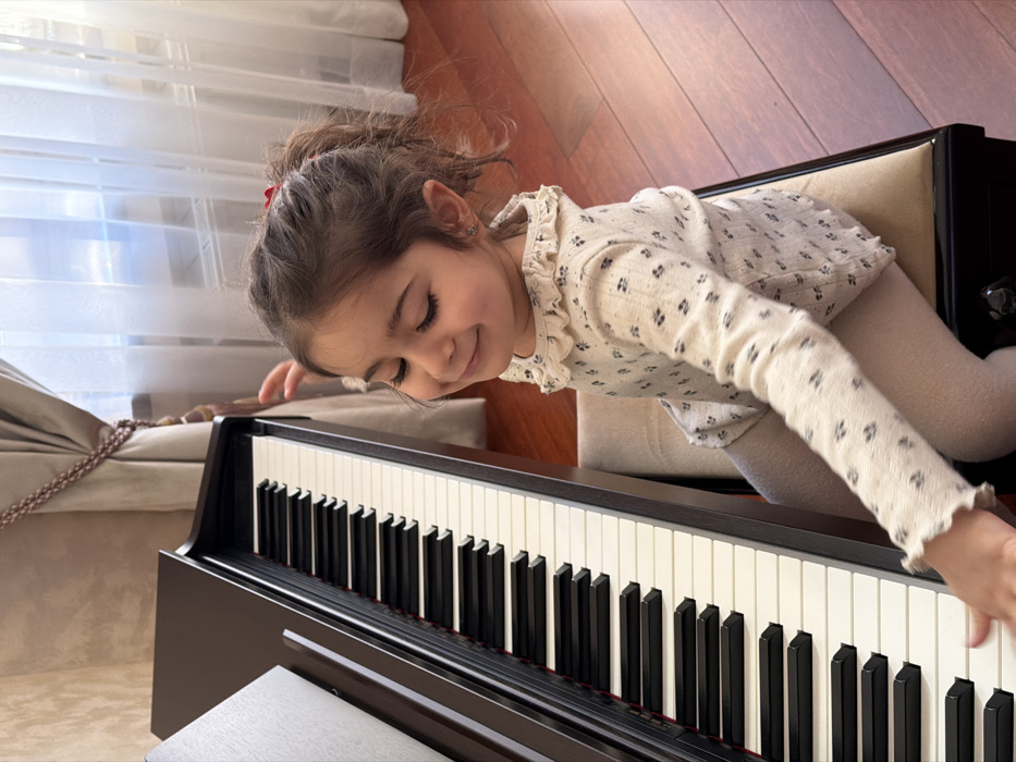 - "An indoor scene in a room located in the city of Mishutkino, Russia, depicts a young child seated at a dark brown digital piano" by FM-FhFPn2, licensed under CC BY 4.0
