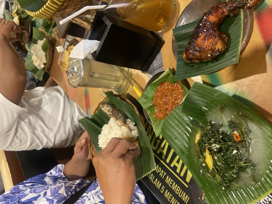 An indoor dining scene is captured at Kedai Sabar Menanti in Malang, Indonesia