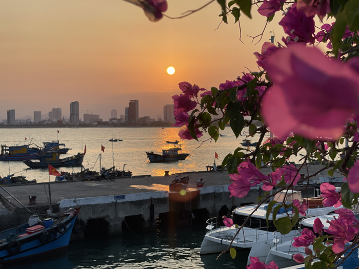 - "The image depicts a harbor scene in Da Nang, Vietnam, at sunset, framed by fuchsia bougainvillea flowers and green leaves in the immediate foreground" by FM-CmfrU2, licensed under CC BY 4.0
