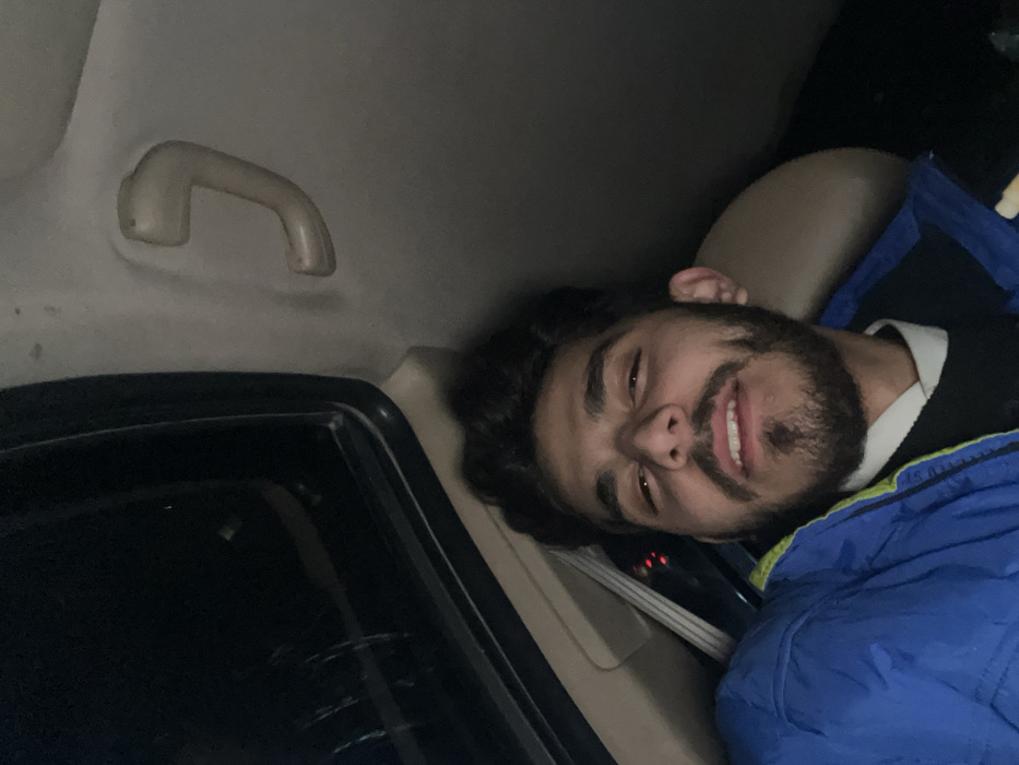 - "A man with dark, curly hair and a beard is lying down in a car" by FM-WnN6r1, licensed under CC BY 4.0