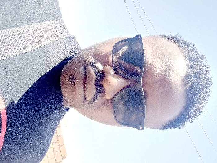 This image presents a close-up, head-and-shoulders view of a male individual outdoors in Heany, Zimbabwe