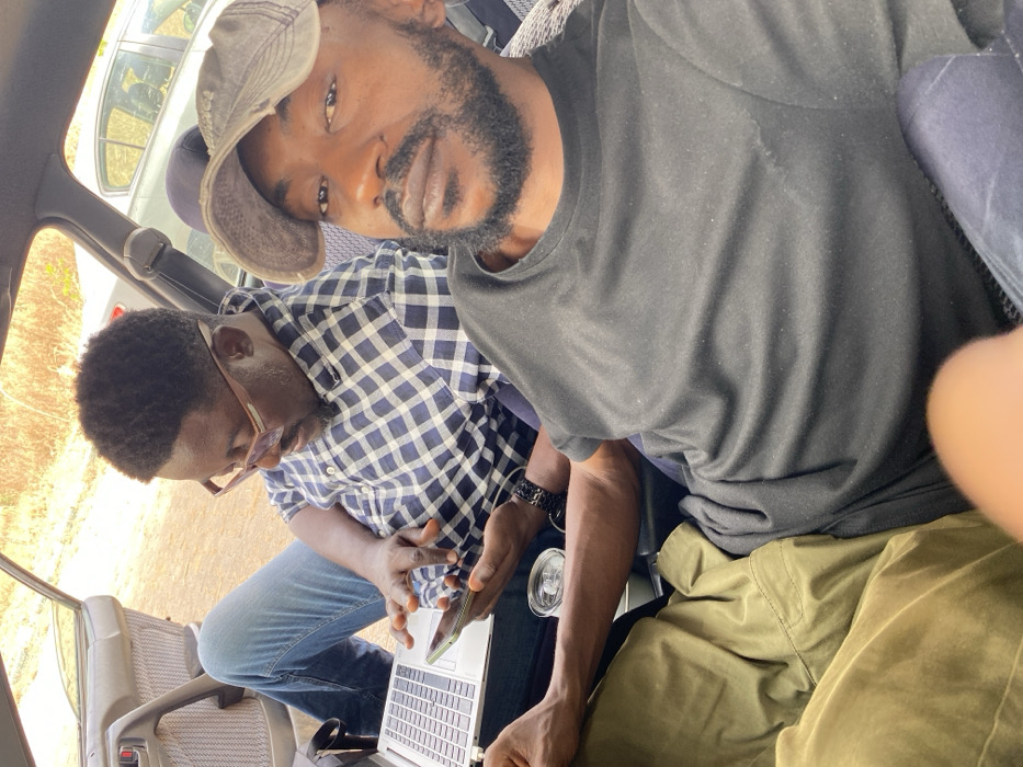 Inside a vehicle in Ungwan Liman, Nigeria, two adult males are observed
