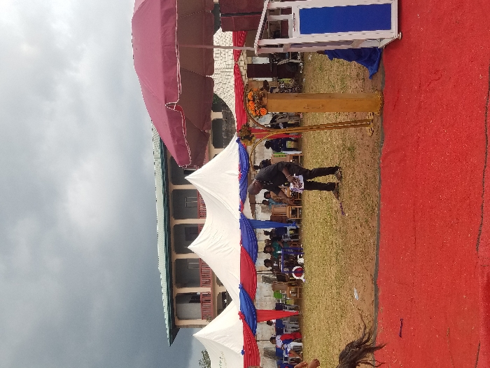 The image depicts an outdoor event, reported to be in Alor, Nigeria, under a heavily overcast sky