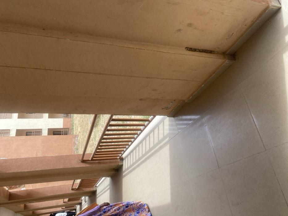 The image depicts a semi-enclosed outdoor corridor within a building complex in Baganakwo, Nigeria